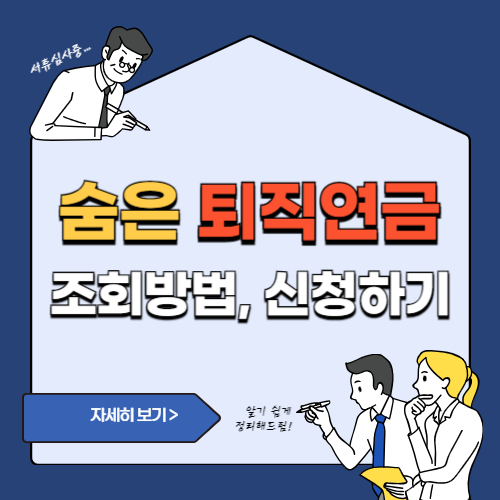 이 포스팅을 통해 숨은 퇴직연금을 어떻게 조회하고, 어떻게 신청할 수 있는지 숨은 퇴직연금 간단 조회방법과 신청방법에 대해 알려 드리겠습니다. 더 이상 놓치지 말고 내 숨은 퇴직연금을 찾아보세요!